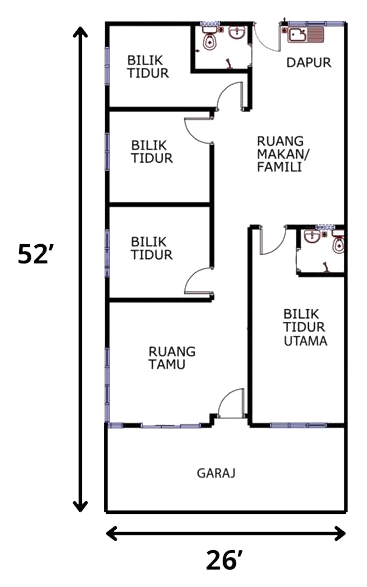 Functional Kitchen: A practical kitchen space (Dapur) at the rear, positioned for easy access to the dining area.